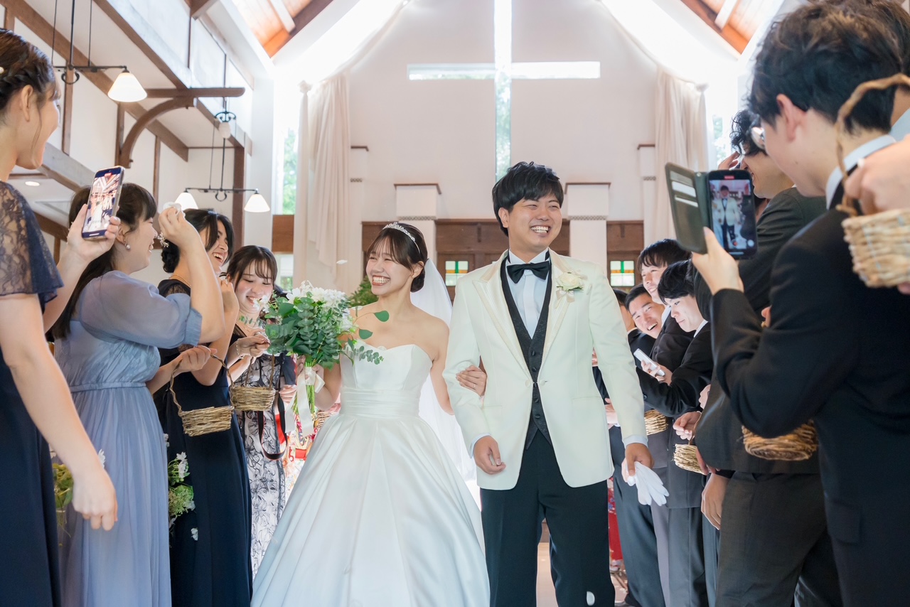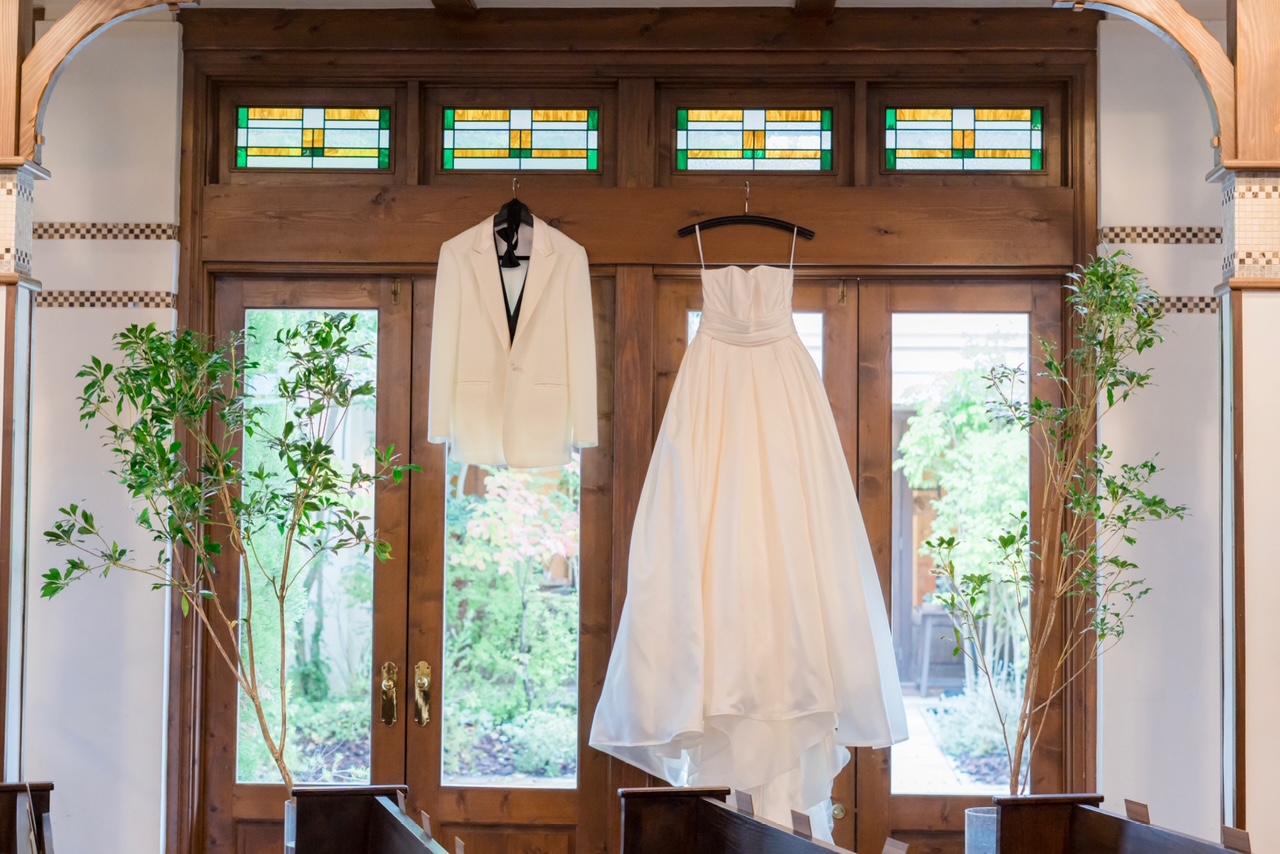 チャペル(教会)内にレンタルウエディングドレスとレンタルタキシードを