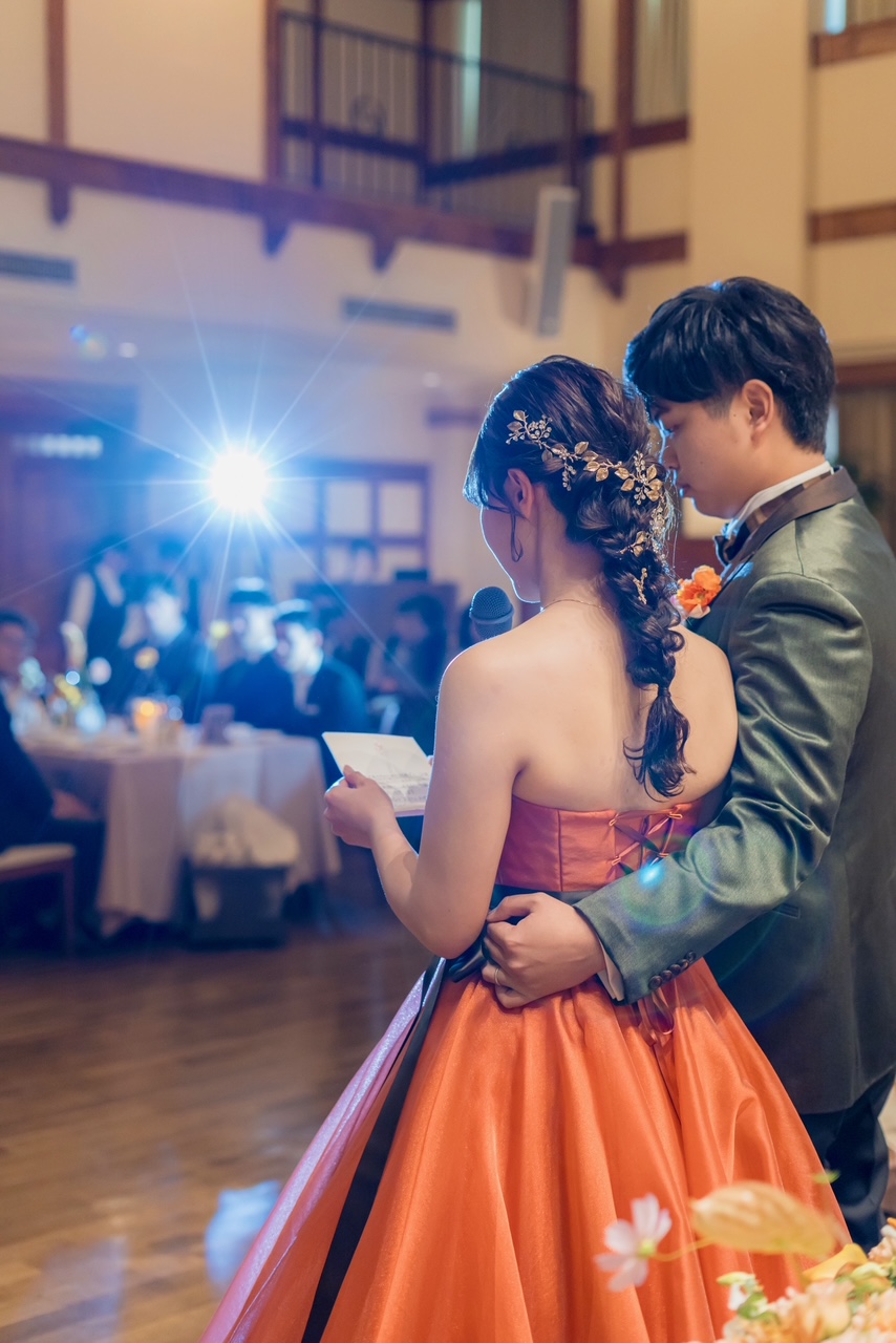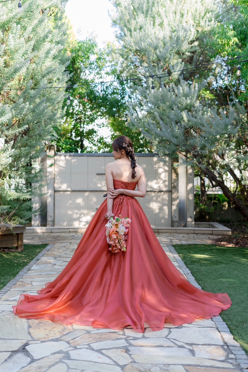 新婦様のレンタルカラードレスは大人気のテラコッタカラーのドレスで